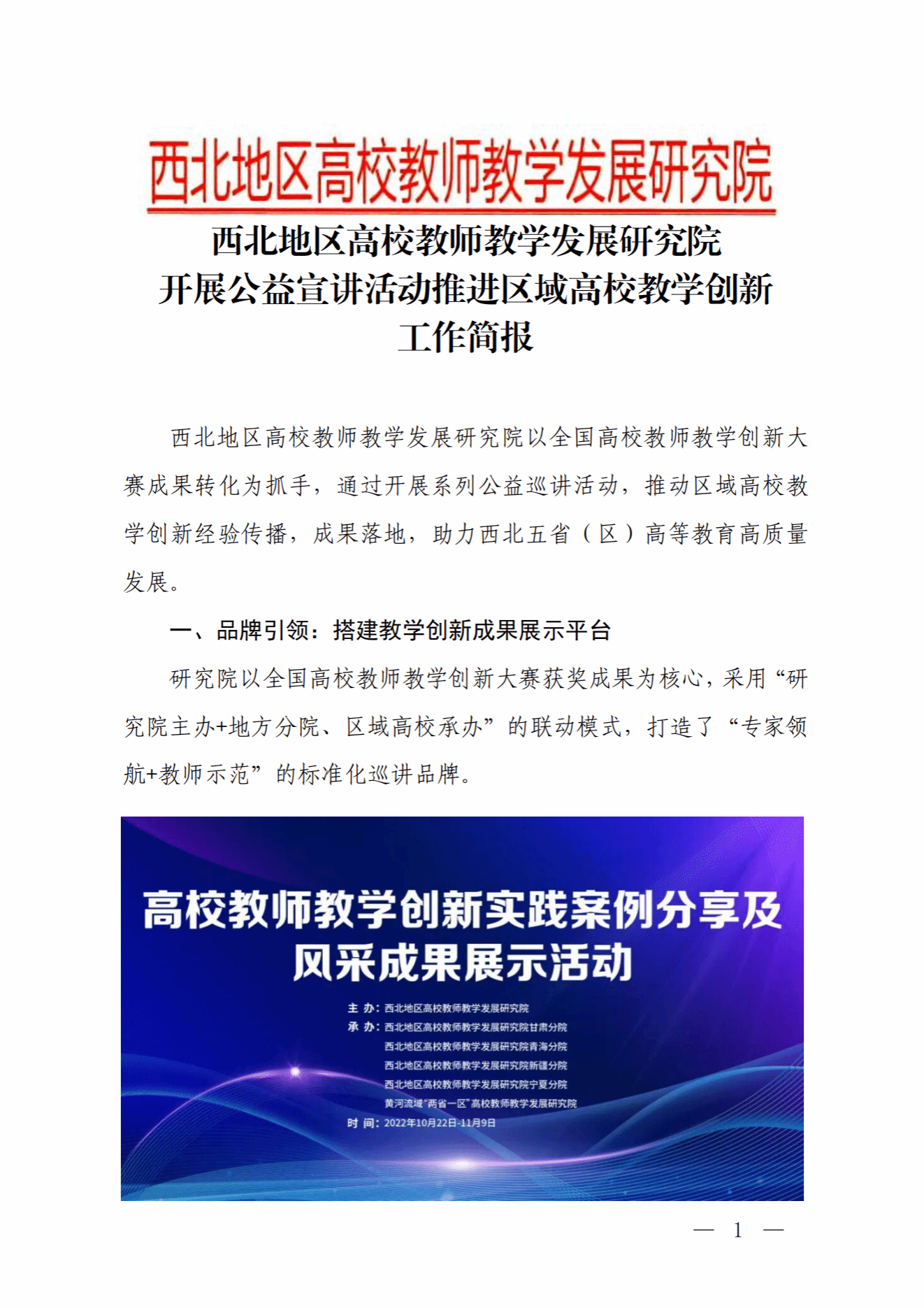 西北地区高校教师教学发展研究院开展公益宣讲活动推进区域高校教学创新工作简报